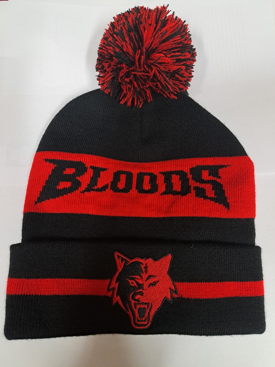 New design for the 2025 season. Black and red bold stripe with Bloods name and embroidered Wolf mascot on front.